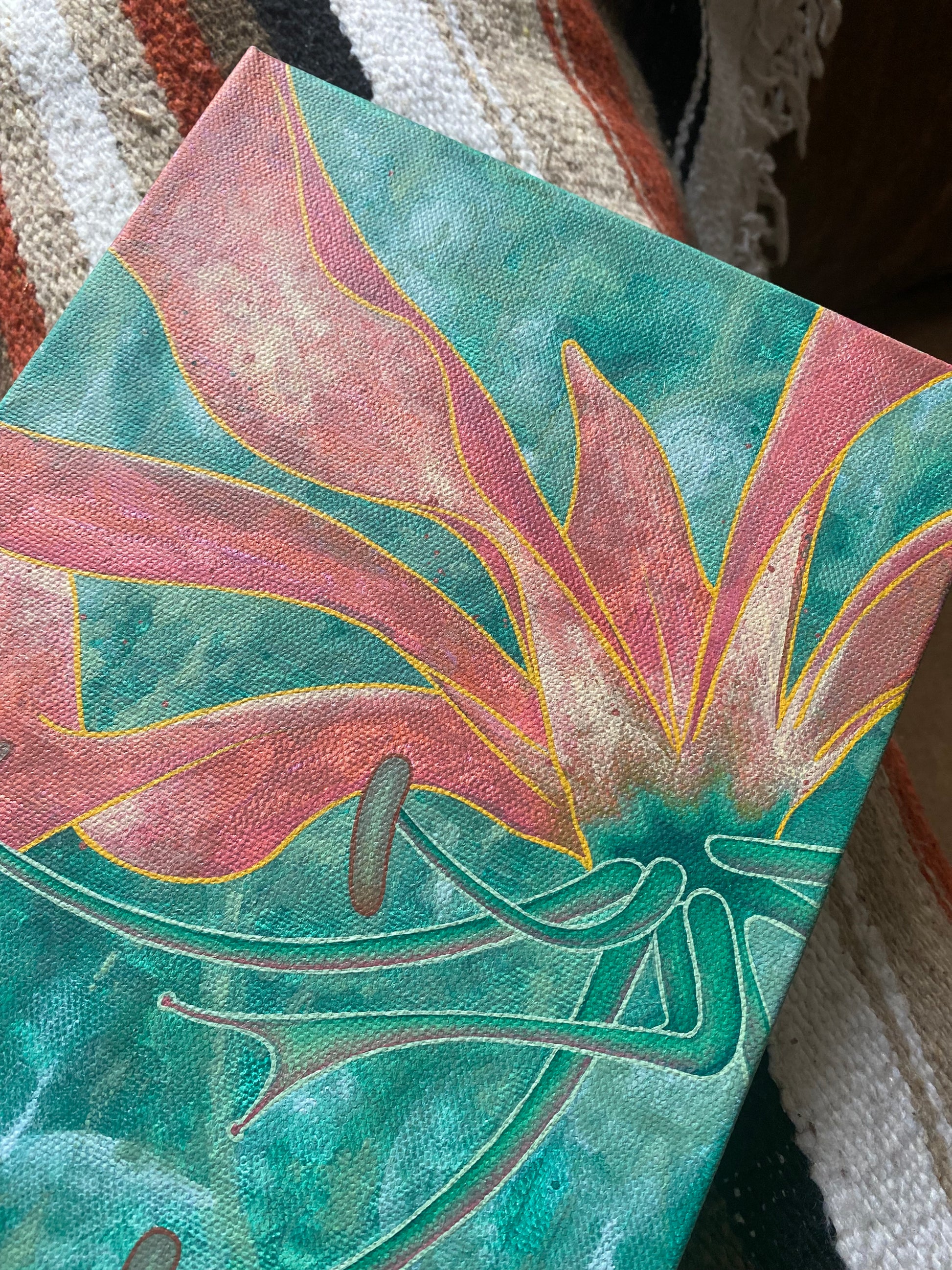 Flame Lily, acrylic on canvas, 8"x10" with rear wire for installation